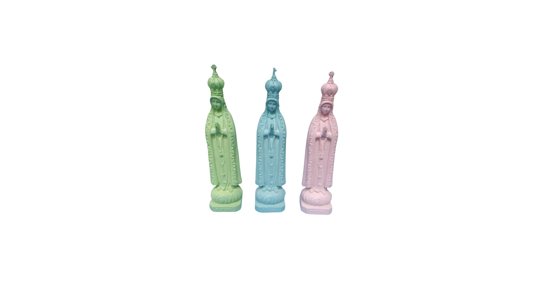 N. Sra. de Fátima coloridas em gesso c/ pombas