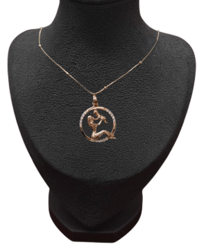 Fio em aço inoxidável, dourado e medalha em formato de mãe e filho